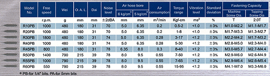 Air Screwdriver (Lever Start Shut Off Model) 1. Standards: . Tightening Torque: from 0.1 to 9.5Nm . Torque Control System: stagger rail motion mechanism (one pulse clutch) . Easy to adjust torque . Air Motor System: alternation switch system 2. Capability: . Greater Comfort for The Operator (Ergonomic and Soft Grip): the new T series are characterized by extremely small dimensions, low weights and short overall lengths. . Easy adjusting fastening torque by tightening or loosening nut torque indication . Tighten to The Right: increase torque . Loosen to The Left: decrease torque . Low Standard Deviation: all controlled drivers assemble and control the operation at the same time. They guarantee the highest torque accuracy (+/- 3% standard deviation). . Easy change of valve reverse (right/left) button turn direction can be done. . Large Torque Range and Low Vibration Level: the new stagger rail motion mechanism allows to obtain the low vibration level and large torque range. . More Power: the new alternation motion mechanism obtains more power.